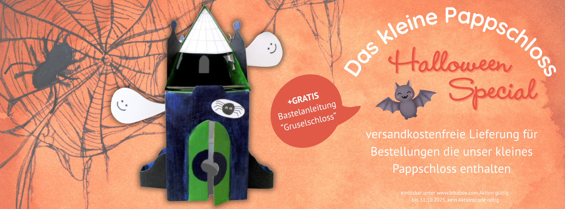 HALLOWEEN-SPECIALalle Bestellungen mit dem kleinen Pappschloss versandkostenfrei,gratis Bastelanleitung "Gruselschloss" (Drucker erforderlich, PDF wird an E-Mail verschickt)Prinzessinnen und Prinzen aufgepasst: mit unserem bibabox® Pappschloss bringt ihr adligen Glanz ins Kinderzimmer! Oder wie wäre es mit einem gruseligen Schloss?Das kleine Pappschloss - zusammenstecken, individuell gestalten und schon haben beliebte Figuren des Kinderzimmers, wie Pferdchen, Prinzessin und Ritter ein herrschaftliches Zuhause. Es ist einzigartig schön, kann es doch nach eigenen Vorstellungen gestaltet werden. Lass Deinen Ideen ihren Lauf und bemale Dein Pappschloss wie es Dir gefällt.Ausgezeichnet mit dem renommierten SpielGut®-Siegel für pädagogisch wertvolles Kinderspielzeug. Schere und Klebstoff werden nicht benötigt. Eine Anleitung liegt bei. Seid kreativ und gestaltet Euer persönliches Pappspielzeug nach Euren Vorstellungen. Auf die Pappe, fertig, loooos! DIN EN 71 sicheres Spielzeug, plastikfrei 100 % in Deutschland hergestellt Maße aufgebautes Schlösschen (BxLxH): 18x8x24 cm Gewicht: 0,3 kg Inhalt: ein kleines Schlösschen Material: Stabile, weiße Wellpappe, aus RecyclingmaterialACHTUNG! Nicht für Kinder unter drei Jahren geeignet. Erstickungsgefahr durch kleine Teile, die verschluckt oder eingeatmet werden können.GPSR INFORMATIONAllgemeine InformationenCE-Kennzeichnung: JaHerstellerinformationenName: MW-Consulting GmbHAdresse: Chemnitzer Str. 4, D-09221 NeukirchenE-Mail: hello@bibabox.deWebseite: www.bibabox.comEuropäischer Hersteller: JaVerantwortliche PersonName: Daniel M. Wensler, M.Sc.Adresse: Chemnitzer Str. 4, D-09221 NeukirchenE-Mail: hello@bibabox.de