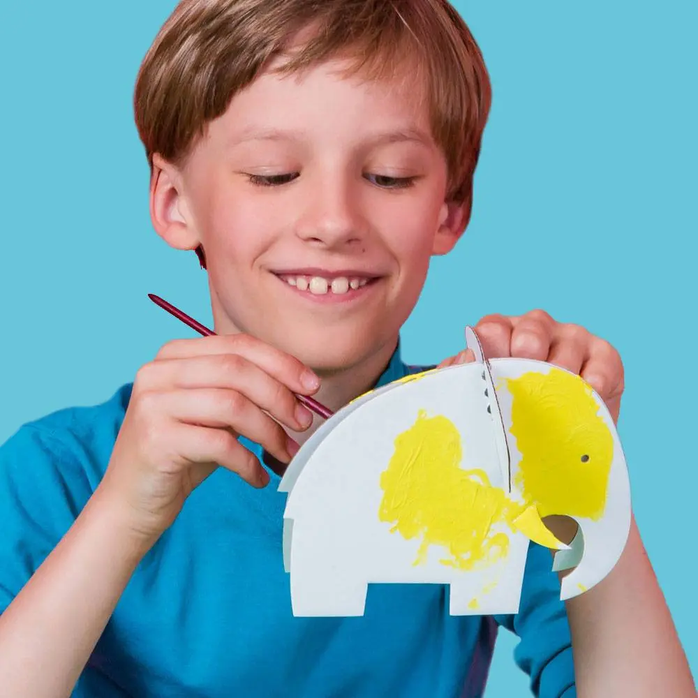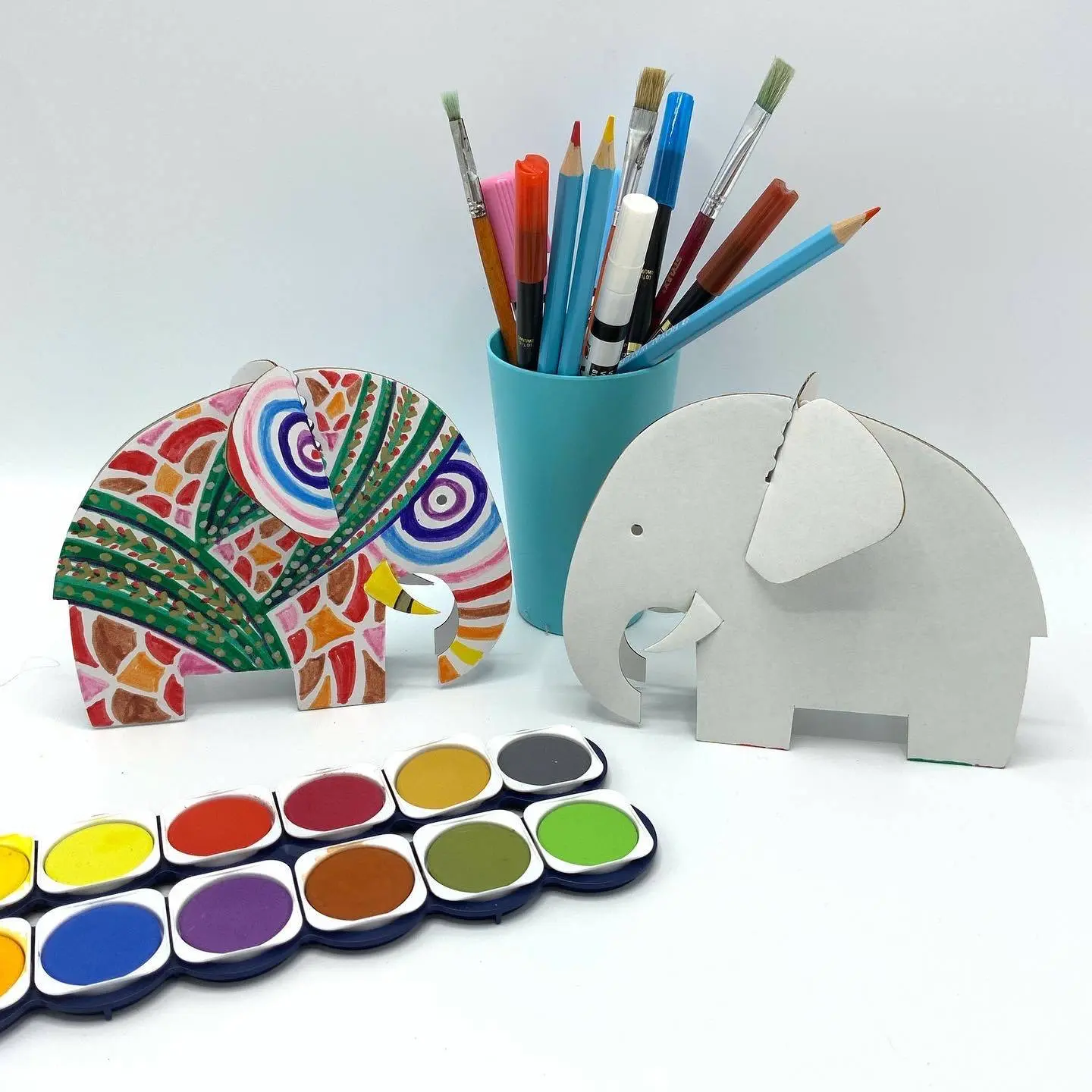 Zwei große und zwei kleine Elefanten im Set stapfen zu viert durch die Savanne und möchten gern bunt werden! Hilfst du ihnen? Nimm die Farbe, Stifte, Glitzer und anderes Dekomaterial und gestalte deine Elefanten wie es dir gefällt. Die Elefanten sind ganz leicht zusammenzustecken und auch für kleinere Kinder ein absolutes Spielhighlight.